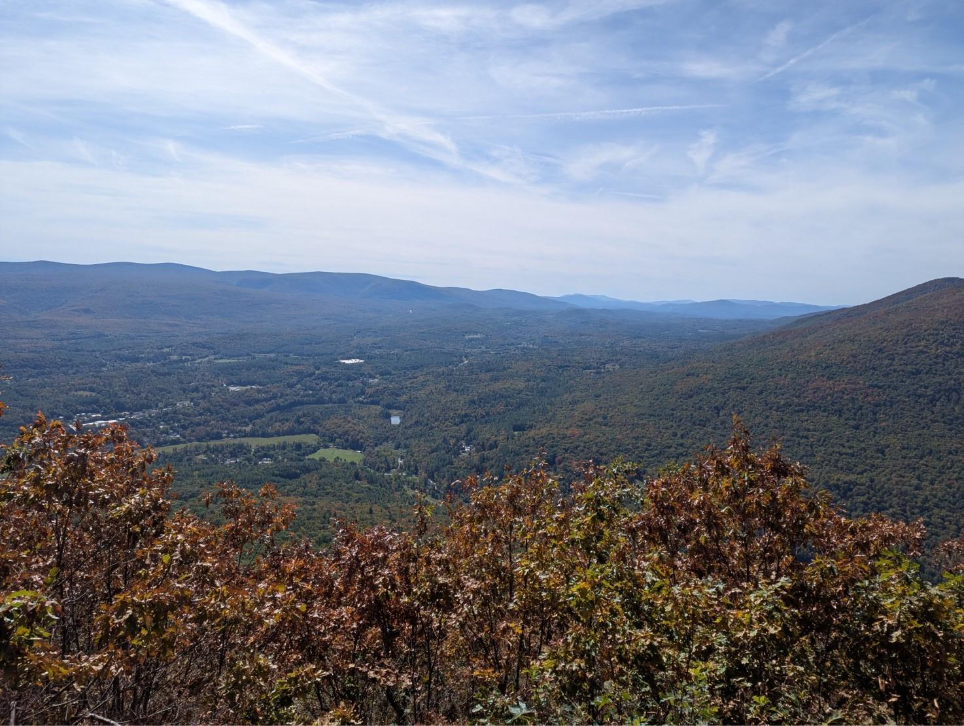 c. Red Mountain parcel report: Mike, Mary Anne, and Jenna’s husband Doug Tait hiked the trail to Flag Rock on Sept. 21 with Peter Hildick-Smith and 2 other Arlington residents. All found the trail difficult, not least because of the ~40% slope and the current unmaintained nature of the trail. It was well worth reaching the overlook at Flag Rock for a magnificent panoramic view south to Bennington. If the Town of Arlington acquires the parcel, Long Trail and Appalachian trail members plan to shut down the steep, eroding trail and build one with switchbacks, lowering the slope of the hike and ensuring better erosion control. Views from Flagg Rock, as provided by Michael Murno, have been added to these minutes.